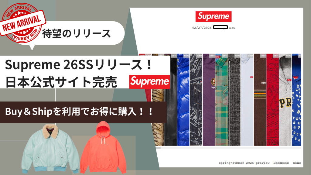 SupremeのSS26の新シーズンのリリースが2/28からスタート!!即完売アイテムや定番ウェアが通常よりもお得な日本公式サイトは完売のアイテムも今なら購入可能です。