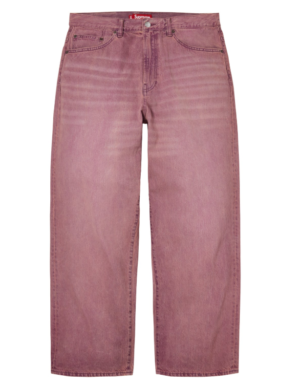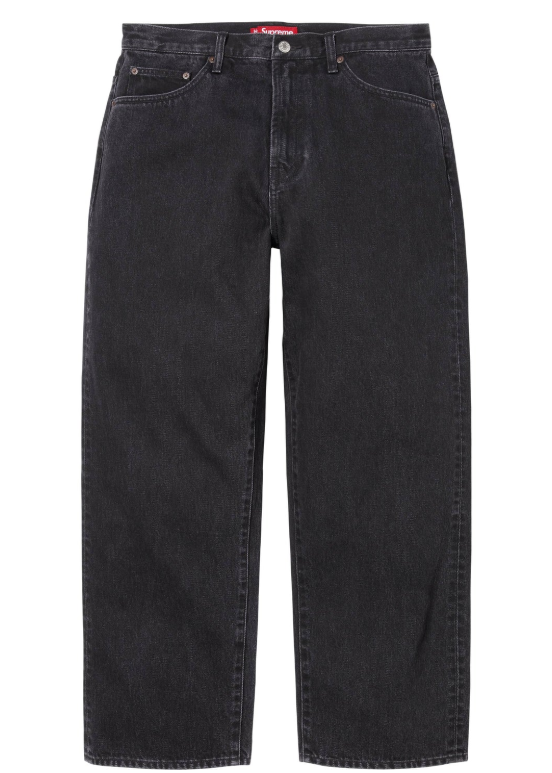 Supreme Baggy Jean(26SS)は、13ozのコットンデニムを使用した極太シルエットのバギージーンズです。 ルーズフィットの5ポケットスタイルで、ジップフライ、シングルコインポケット、銅リベット、バックポケットの刺繍ロゴがクラシックなディテールを形成。股上深めで股下長めに設定され、90年代ヒップホップを彷彿とさせるシルエットが特徴です。 Rigid IndigoやBlackなどのカラー展開で、エイジングを楽しめる定番ボトム。ストリートコーデの主役として26SS Week1でリリース。