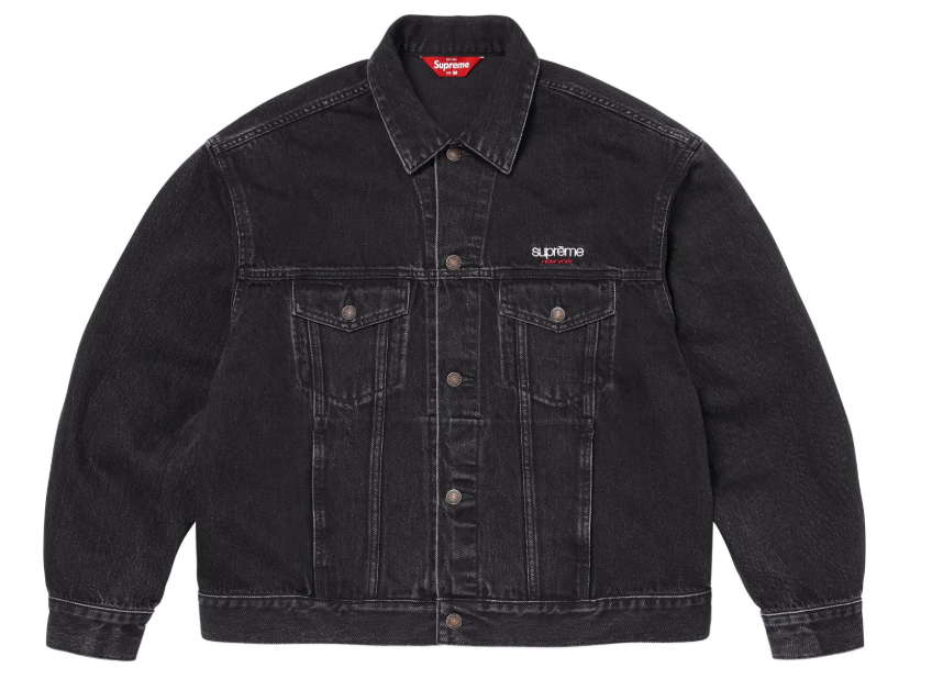 Supreme Denim Trucker Jacket(26SS)は、クラシックなトラッカージャケットをベースにしたオールシーズン対応のデニムアウターです。しっかりとしたコットンデニムを使用し、フロントボタン、チェストフラップポケット、ハンドポケットなど王道のディテールを装備。袖口と裾のタブアジャスターでシルエット調整ができ、バックレザーパッチや胸のロゴ刺繍がさりげなく存在感をプラス。Tシャツやフーディに羽織るだけでストリート感のあるスタイルが完成する、定番の一着です。