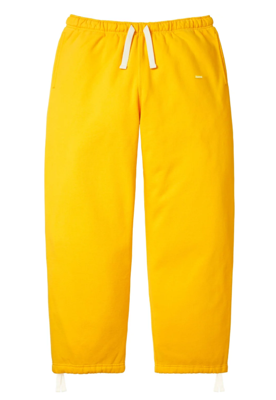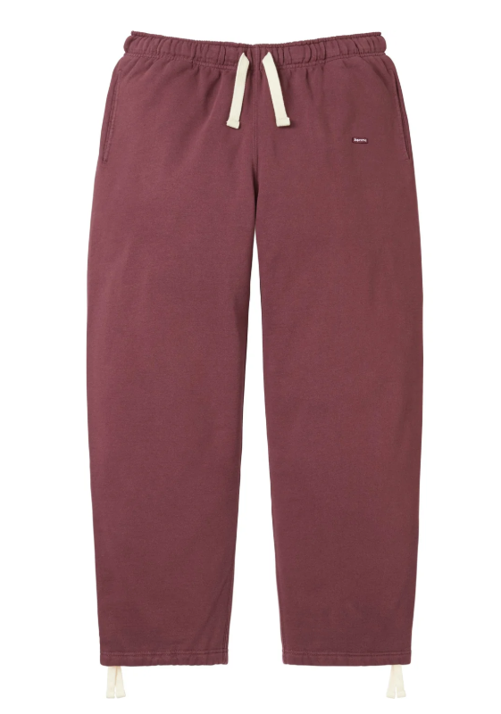 Supreme Small Box Drawstring Sweatpant(26SS)は、スモールボックスロゴを太ももに刺繍したセットアップ対応のスウェットパンツです。 ヘビーウェイト裏起毛スウェット素材(brushed-back fleece)で、サイドシームポケットとバックパッチポケットを備え、エラスティックウエスト&カフスに内蔵ドローコードでフィット調整が可能。Heather GreyやMint、Yellowなどの鮮やかなカラー展開が特徴。